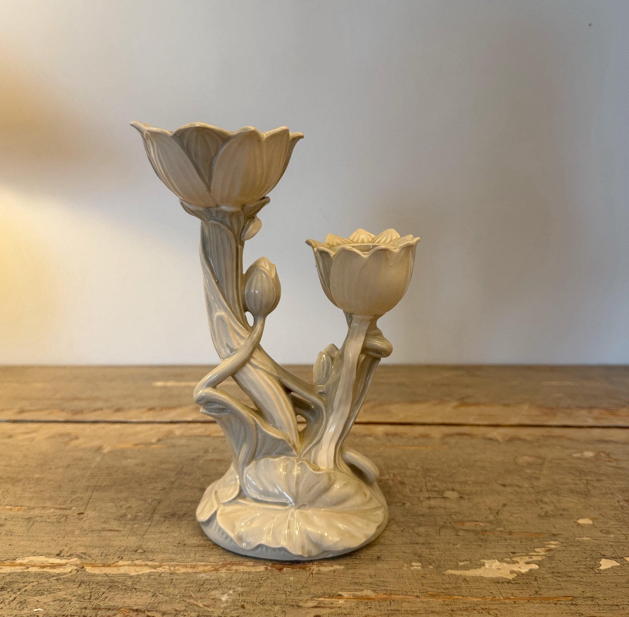 Jugend Ljusstake med Dubbla Ljusarmar Blommor