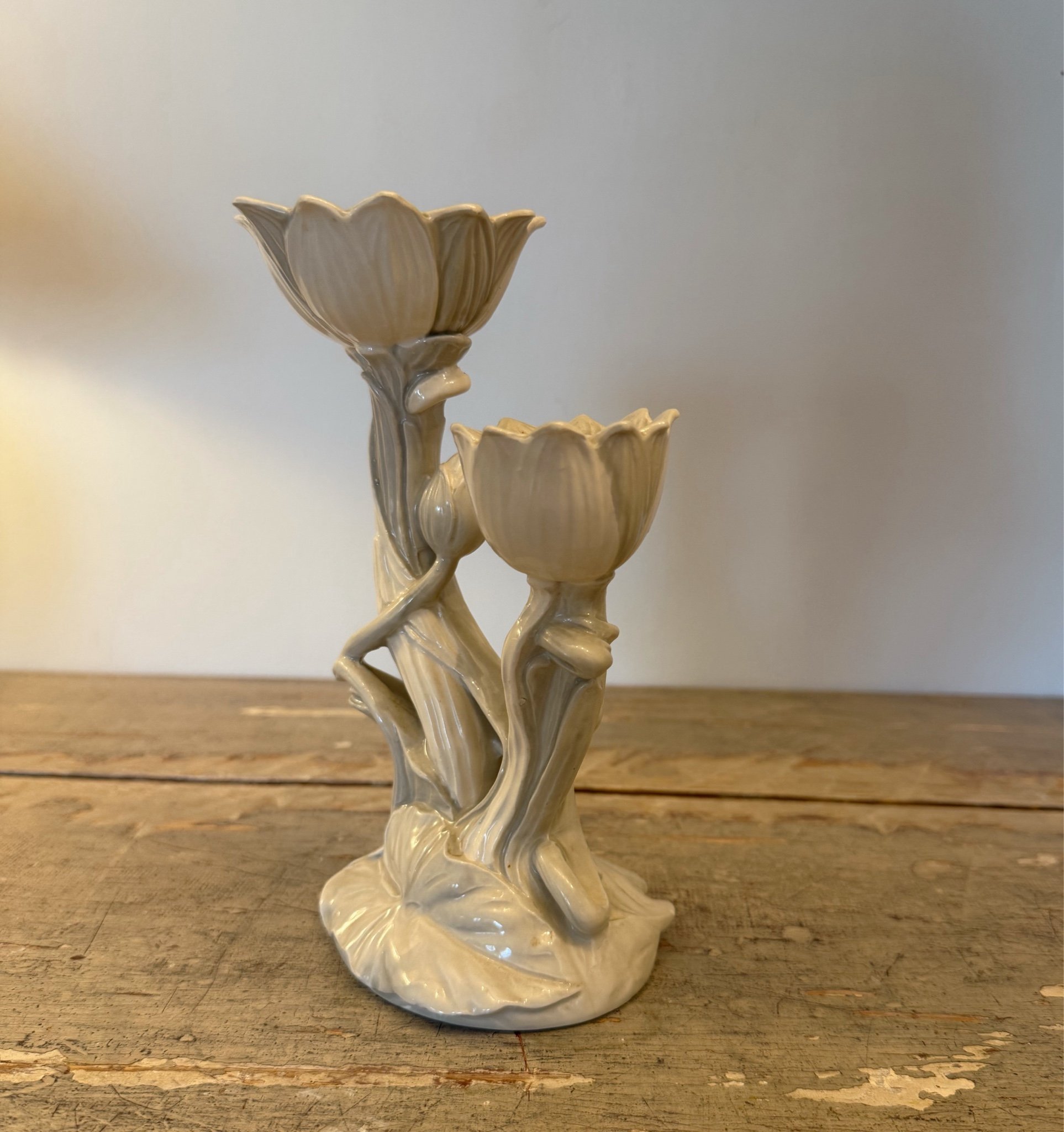 Jugend Ljusstake med Dubbla Ljusarmar Blommor 1,00 kr