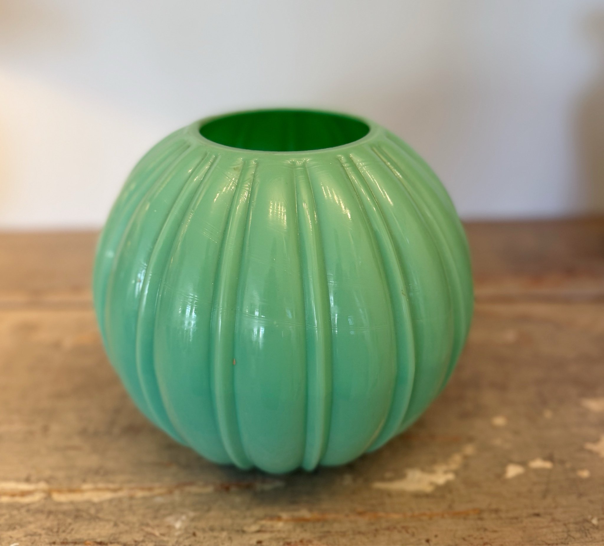 Art Deco STOR Klyftvas i Celadongrönt opakt Glas 1930-tal